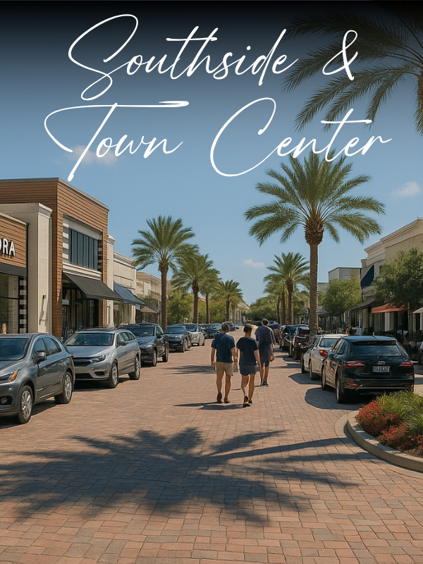 This vibrant area is anchored by the St. Johns Town Center, a sprawling open-air lifestyle complex with over 1.1 million square feet of retail, dining, and residential space. Southside offers a mix of suburban comfort and urban convenience, with housing options ranging from luxury apartments and condos to family-friendly subdivisions and golf course communities. The area is home to the University of North Florida and sits just minutes from Jacksonville Beach and downtown, making it ideal for students, professionals, and families alike. Residents enjoy amenities like TopGolf, iFly, and scenic parks, while nearby areas like Tinseltown and The Avenues Mall expand the entertainment and shopping options. With its walkable layout, diverse dining scene, and strong connectivity, the Southside & Town Center area is a top choice for those seeking a lively yet livable Jacksonville lifestyle.